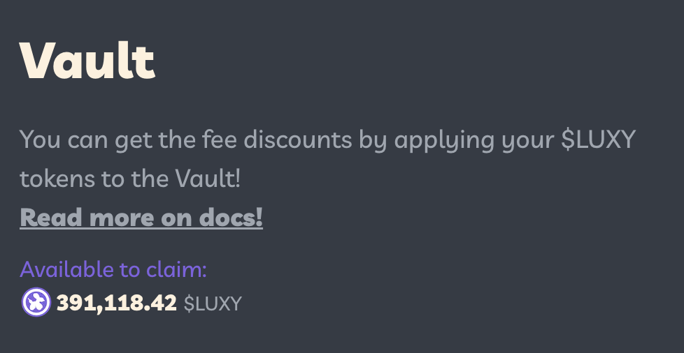 **You don't need to worry about your deposited $LUXY tokens: only the depositor can withdraw the tokens, as they are safely locked in a Vault Smart Contract. If you have any questions, please reach out to us on** [**Discord**](https://discord.gg/p4DdnsFT) **to discuss!**