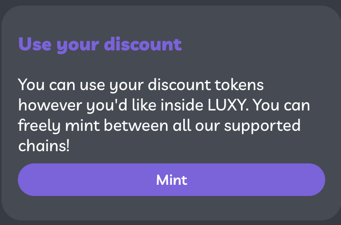 The **lock** will allow you to mint **discount tokens** on all blockchains supported by Luxy. [Check the next section for a step-by-step guide on how to do this!](#minting-discount-tokens-on-other-supported-chains)